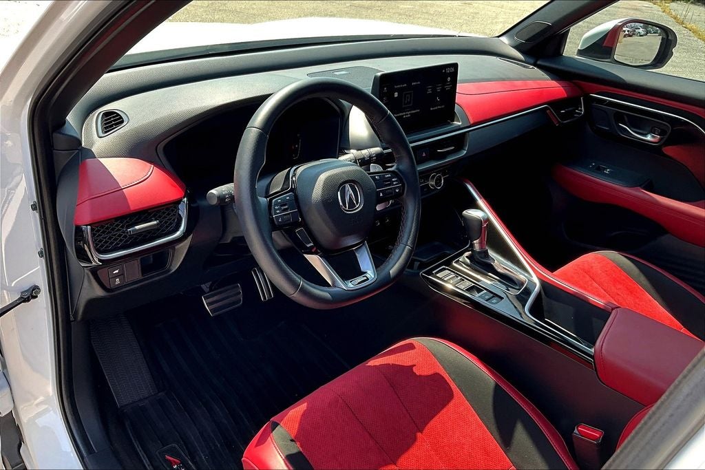 4-Wheel Disc Brakes, 8 Speakers, ABS brakes, Air Conditioning, Alloy wheels, AM/FM radio, Apple CarPlay/Android Auto, Auto High-beam Headlights, Auto-dimming Rear-View mirror, Automatic temperature control, Brake assist, Bumpers: body-color, Delay-off headlights, Driver door bin, Driver vanity mirror, Dual front impact airbags, Dual front side impact airbags, Electronic Stability Control, Emergency communication system: AcuraLink, Exterior Parking Camera Rear, Four wheel independent suspension, Front anti-roll bar, Front Bucket Seats, Front Center Armrest, Front dual zone A/C, Front fog lights, Front reading lights, Fully automatic headlights, Heated and Ventilated Front Bucket Seats, Heated door mirrors, Heated front seats, Illuminated entry, Knee airbag, Lane departure: Lane Keeping Assist System (LKAS) active, Leather Shift Knob, Leather steering wheel, Leatherette Trimmed Seats with Microsuede Accents, Low tire pressure warning, Occupant sensing airbag, Outside temperature display, Overhead airbag, Overhead console, Panic alarm, Passenger door bin, Passenger vanity mirror, Power door mirrors, Power driver seat, Power Liftgate, Power moonroof: Panoramic, Power passenger seat, Power steering, Power windows, Radio data system, Radio: AM/FM Acura Premium Audio System, Rear anti-roll bar, Rear reading lights, Rear seat center armrest, Rear side impact airbag, Rear window defroster, Rear window wiper, Remote keyless entry, Security system, Speed control, Speed-sensing steering, Speed-Sensitive Wipers, Split folding rear seat, Spoiler, Sport steering wheel, Steering wheel mounted audio controls, Tachometer, Telescoping steering wheel, Tilt steering wheel, Traction control, Trip computer, Turn signal indicator mirrors, Variably intermittent wipers, Ventilated front seats, and Wheels: 19 x 8J Aluminum Alloy.