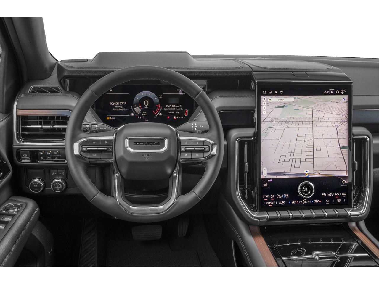 - Audio System, 16.8" diagonal Premium GMC Infotainment System with high contrast display and local backlight dimming, with Google built-in compatibility, including navigation capability, color touch-screen, multi-touch display, connected apps, personalized profiles for each driver's settings, and Natural Voice Recognition