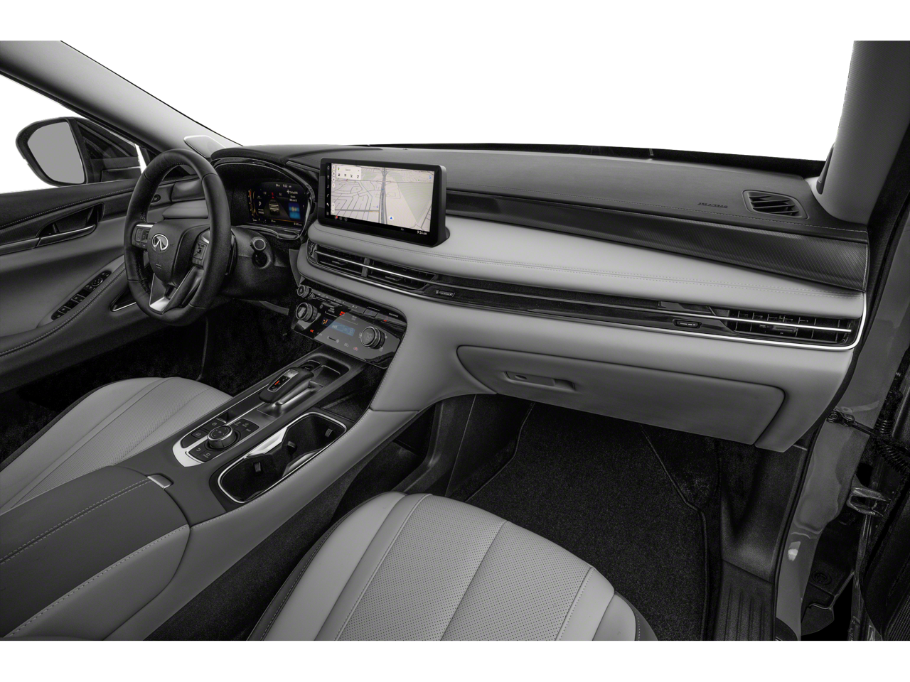 - Radio: Klipsch Premium Audio System -inc: 16 speakers w/subwoofer, INFINITI InTouch 12.3" interactive display, Google built-in w/navigation: Google Assistant, Playstore, maps and data, SiriusXM satellite radio, wireless Apple CarPlay, wireless Android Auto, advanced voice recognition (one shot VDE, Natural Language Understanding (NLU)), INFINITI InTouch services and 5G Wi-Fi hotspot, Active Noise Cancellation (ANC) and 2 data capable type C USB ports in front row