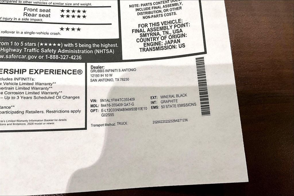 Contact us now to find out why so many customers from across the US rely on Grubbs INFINITI of San Antonio, a family owned business since 1948, to meet their automotive needs! Outside of San Antonio area, no problem, we offer: Reliable, affordable and fast shipping options Nationwide- Our shipping partners are licensed, bonded, fully insured & experienced with high-end vehicles. Hassle free and competitive financing options - Let us leverage our relationships with leading Banks & Credit Unions to get you the lowest rates and best terms for all credit types. Whether you're shopping for a new INFINITI or a quality used pre-owned vehicle you'll receive the same first-class experience from our certified staff of factory trained specialists. Call us today 210-728-3486 or visit us at www.INFINITIofsanantonio.com. .$6000 - Retail Cash. Exp. 03/31/2026