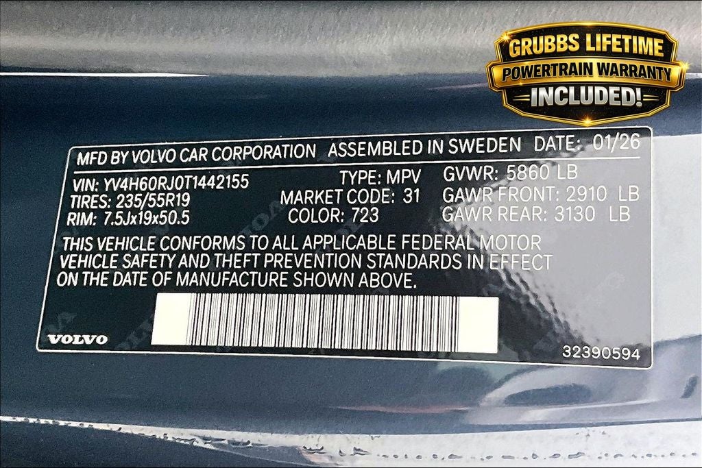 Plus every new Volvo at Grubbs comes with our Lifetime Powertrain Warranty included!