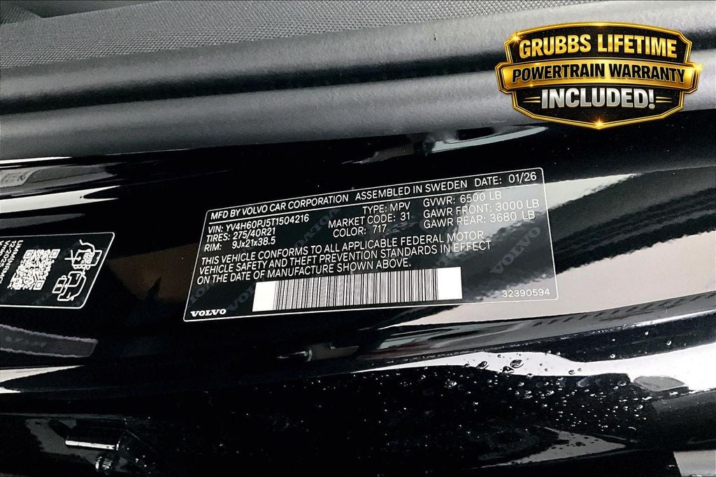 Call 817-533-9638 or come see it today at Grubbs Volvo Cars Grapevine 1550 Texan Trail Grapevine TX 76051. New XC90s with Lifetime Powertrain Warranty like this get claimed quickly. Price includes: $1000 - Affinity - Professional Associations. Exp. 01/04/2027 $1000 - Loyalty Bonus. Exp. 04/30/2026 $1000 - Purchase Allowance. Exp. 04/30/2026