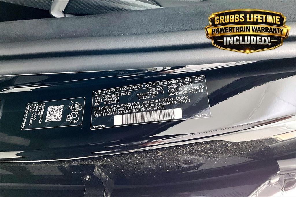 Plus every new Volvo at Grubbs comes with our Lifetime Powertrain Warranty included!