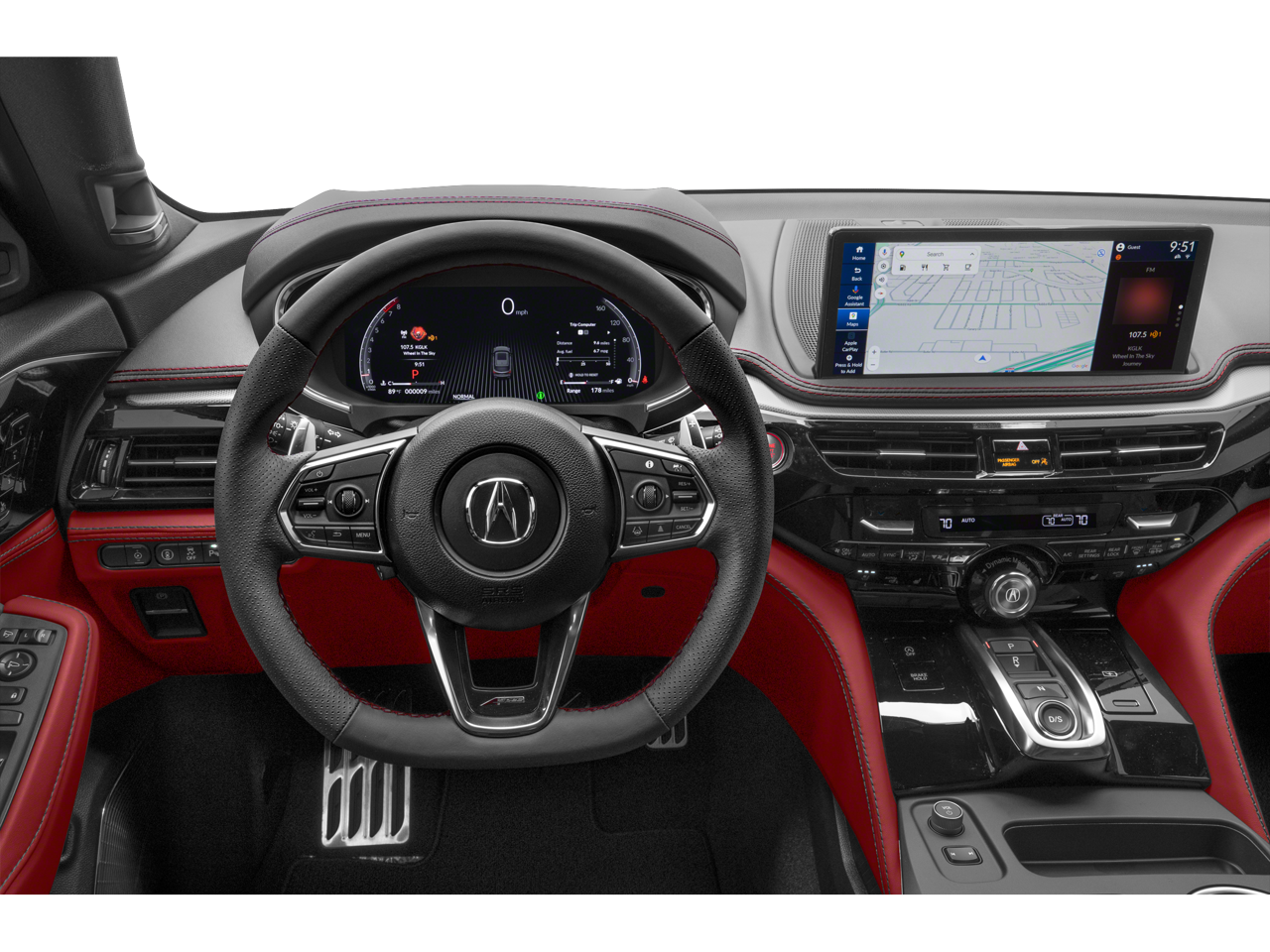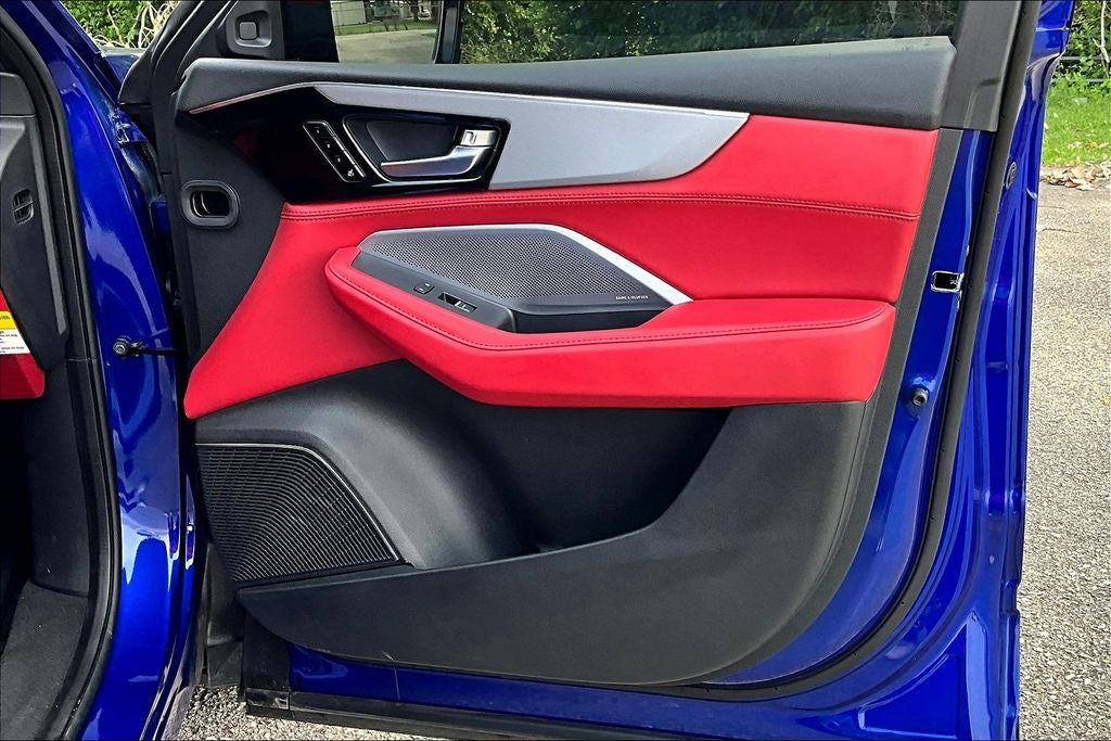 Red w/Perforated Premium Milano Lthr & Ultrasuede Seats, 19 Speakers, 3rd row seats: split-bench, 4-Wheel Disc Brakes, ABS brakes, Air Conditioning, Alloy wheels, Anti-whiplash front head restraints, Apple CarPlay/Android Auto, Audio memory, Auto High-beam Headlights, Auto tilt-away steering wheel, Auto-dimming Rear-View mirror, Automatic temperature control, Brake assist, Bumpers: body-color, Compass, Delay-off headlights, Driver door bin, Driver vanity mirror, Dual front impact airbags, Dual front side impact airbags, Electronic Stability Control, Emergency communication system: AcuraLink, Exterior Parking Camera Rear, Four wheel independent suspension, Front anti-roll bar, Front Bucket Seats, Front Center Armrest, Front dual zone A/C, Front fog lights, Front reading lights, Fully automatic headlights, Garage door transmitter: HomeLink, Heated door mirrors, Heated front seats, HVAC memory, Illuminated entry, Knee airbag, Lane departure: Lane Keeping Assist System (LKAS) active, Leather steering wheel, Low tire pressure warning, Memory seat, Navigation system: Google built-in (3-Years Unlimited Data Plan for In-Vehicle Apps), Occupant sensing airbag, Outside temperature display, Overhead airbag, Overhead console, Panic alarm, Passenger door bin, Passenger vanity mirror, Power door mirrors, Power driver seat, Power Liftgate, Power moonroof, Power passenger seat, Power steering, Power windows, Premium audio system: Acura/ELS Studio 3D, Radio data system, Radio: Bang & Olufsen Premium Audio System, Rain sensing wipers, Rear air conditioning, Rear anti-roll bar, Rear reading lights, Rear seat center armrest, Rear window defroster, Rear window wiper, Remote keyless entry, Security system, Speed control, Speed-sensing steering, Speed-Sensitive Wipers, Split folding rear seat, Spoiler, Sport steering wheel, Steering wheel memory, Steering wheel mounted audio controls, Tachometer, Telescoping steering wheel, Tilt steering wheel, Traction control, Trip computer, Turn signal indicator mirrors, Variably intermittent wipers, Ventilated front seats, and Wheels: 20 x 9J Aluminum Alloy.