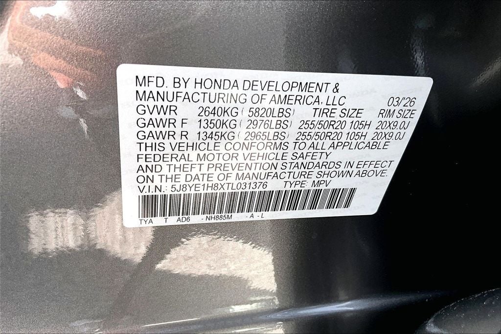 - Rear Tire Size: P255/50HR20