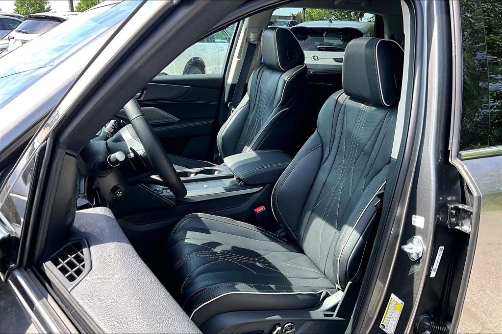 Ebony Leather, 19 Speakers, 3rd row seats: split-bench, 4-Wheel Disc Brakes, ABS brakes, Adaptive suspension, Air Conditioning, Alloy wheels, AM/FM radio, Anti-whiplash front head restraints, Apple CarPlay/Android Auto, Audio memory, Auto High-beam Headlights, Auto tilt-away steering wheel, Auto-dimming Rear-View mirror, Automatic temperature control, Brake assist, Bumpers: body-color, Compass, Curvilinear Quilted Perforated Premium Milano Leather Seats, Delay-off headlights, Driver door bin, Driver vanity mirror, Dual front impact airbags, Dual front side impact airbags, Electronic Stability Control, Emergency communication system: AcuraLink, Exterior Parking Camera Rear, Four wheel independent suspension, Front anti-roll bar, Front Bucket Seats, Front Center Armrest, Front dual zone A/C, Front fog lights, Front reading lights, Fully automatic headlights, Garage door transmitter: HomeLink, Heads-Up Display, Heated and Ventilated Front Sport Seats, Heated door mirrors, Heated front seats, Heated rear seats, Heated steering wheel, HVAC memory, Illuminated entry, Knee airbag, Lane departure: Lane Keeping Assist System (LKAS) active, Leather steering wheel, Low tire pressure warning, Memory seat, Navigation system: Google built-in (3-Years Unlimited Data Plan for In-Vehicle Apps), Occupant sensing airbag, Outside temperature display, Overhead airbag, Overhead console, Panic alarm, Passenger door bin, Passenger vanity mirror, Power door mirrors, Power driver seat, Power Liftgate, Power moonroof, Power passenger seat, Power steering, Power windows, Premium audio system: Acura/ELS Studio 3D, Radio data system, Radio: Bang & Olufsen Premium Audio System, Rain sensing wipers, Rear air conditioning, Rear anti-roll bar, Rear reading lights, Rear seat center armrest, Rear window defroster, Rear window wiper, Remote keyless entry, Security system, Speed control, Speed-sensing steering, Speed-Sensitive Wipers, Split folding rear seat, Spoiler, Steering wheel memory, Steering wheel mounted audio controls, Tachometer, Telescoping steering wheel, Tilt steering wheel, Traction control, Trip computer, Turn signal indicator mirrors, Variably intermittent wipers, Ventilated front seats, and Wheels: 20 x 9J Aluminum Alloy.