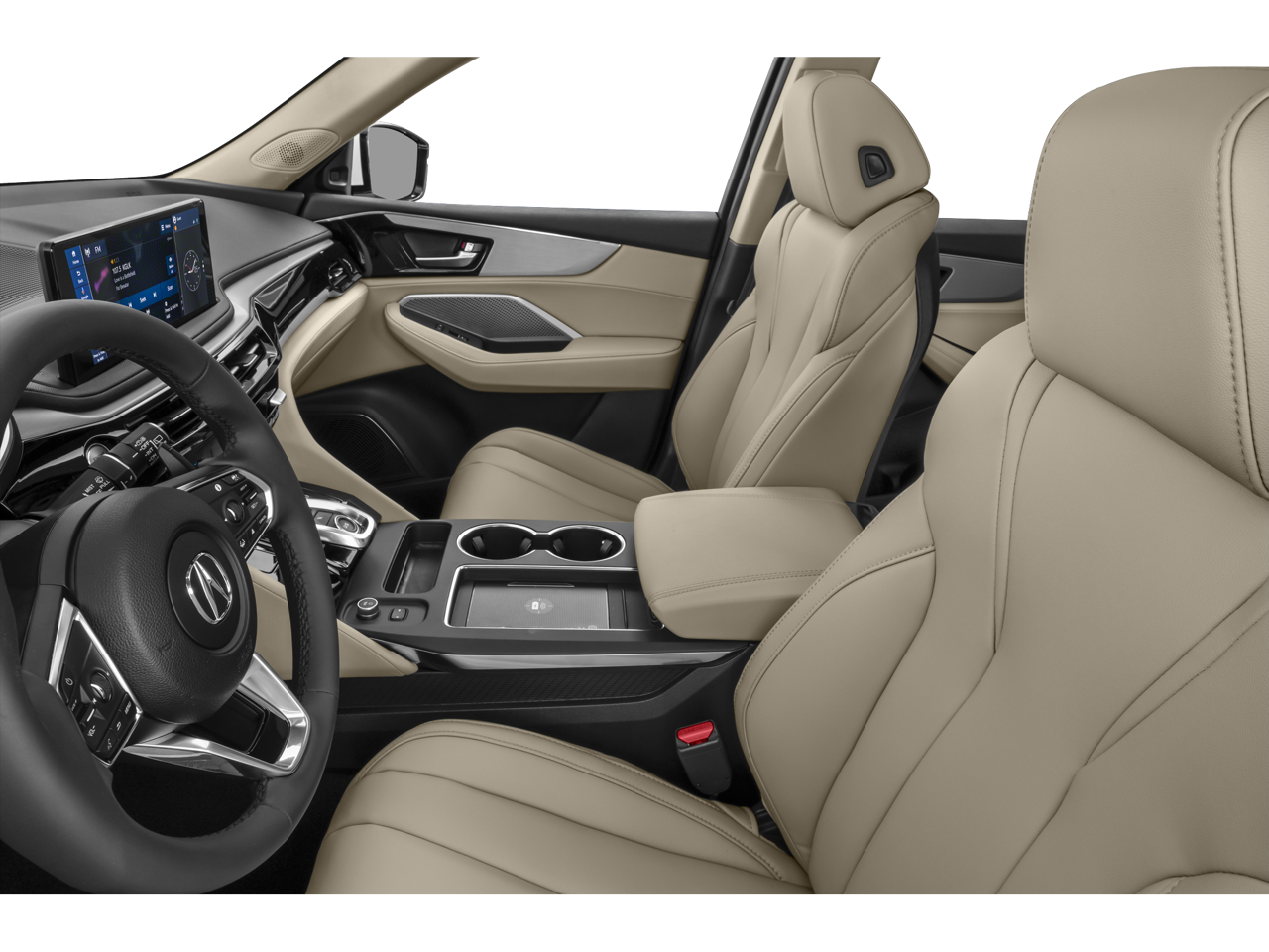 Parchment, 11 Speakers, 3rd row seats: split-bench, 4-Wheel Disc Brakes, ABS brakes, Air Conditioning, Alloy wheels, AM/FM radio, Anti-whiplash front head restraints, Apple CarPlay/Android Auto, Audio memory, Auto High-beam Headlights, Auto tilt-away steering wheel, Auto-dimming Rear-View mirror, Automatic temperature control, Brake assist, Bumpers: body-color, Compass, Delay-off headlights, Driver door bin, Driver vanity mirror, Dual front impact airbags, Dual front side impact airbags, Electronic Stability Control, Emergency communication system: AcuraLink, Exterior Parking Camera Rear, Four wheel independent suspension, Front anti-roll bar, Front Bucket Seats, Front Center Armrest, Front dual zone A/C, Front reading lights, Fully automatic headlights, Garage door transmitter: HomeLink, Heated door mirrors, Heated front seats, Heated Front Sport Seats, HVAC memory, Illuminated entry, Knee airbag, Lane departure: Lane Keeping Assist System (LKAS) active, Leather steering wheel, Leatherette Trimmed Seats, Low tire pressure warning, Memory seat, Navigation system: Google built-in (3-Years Unlimited Data Plan for In-Vehicle Apps), Occupant sensing airbag, Outside temperature display, Overhead airbag, Overhead console, Panic alarm, Passenger door bin, Passenger vanity mirror, Power door mirrors, Power driver seat, Power Liftgate, Power moonroof, Power passenger seat, Power steering, Power windows, Radio data system, Radio: AM/FM Acura Premium Audio System, Rear air conditioning, Rear anti-roll bar, Rear reading lights, Rear seat center armrest, Rear window defroster, Rear window wiper, Remote keyless entry, Security system, Speed control, Speed-sensing steering, Speed-Sensitive Wipers, Split folding rear seat, Spoiler, Steering wheel memory, Steering wheel mounted audio controls, Tachometer, Telescoping steering wheel, Tilt steering wheel, Traction control, Trip computer, Turn signal indicator mirrors, Variably intermittent wipers, and Wheels: 19 x 8.5J Aluminum Alloy.