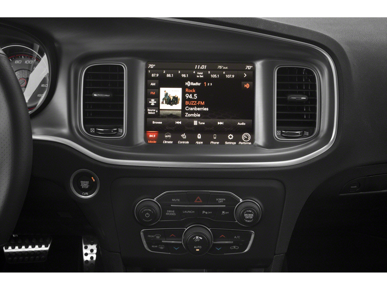 Quick Order Package 21W, 4-Wheel Disc Brakes, 6 Speakers, ABS brakes, Air Conditioning, Alloy wheels, AM/FM radio: SiriusXM, Anti-whiplash front head restraints, Apple CarPlay/Android Auto, Auto-dimming Rear-View mirror, Automatic temperature control, Brake assist, Bumpers: body-color, Cloth Performance Seats w/Bee Logo, Compass, Delay-off headlights, Driver door bin, Driver vanity mirror, Dual front impact airbags, Dual front side impact airbags, Electronic Stability Control, Emergency communication system: SiriusXM Guardian, Four wheel independent suspension, Front anti-roll bar, Front Bucket Seats, Front Center Armrest, Front dual zone A/C, Front fog lights, Front License Plate Bracket, Front reading lights, Fully automatic headlights, Garage door transmitter: HomeLink, Heated front seats, Illuminated entry, Knee airbag, Leather Shift Knob, Low tire pressure warning, Manufacturer's Statement of Origin, Occupant sensing airbag, Outside temperature display, Overhead airbag, Overhead console, Panic alarm, ParkView Rear Back-Up Camera, Passenger door bin, Passenger vanity mirror, Power door mirrors, Power driver seat, Power Driver/Passenger 4-Way Lumbar Adjust, Power Front Driver/Passenger Seats, Power passenger seat, Power steering, Power windows, Radio data system, Radio: Uconnect 4C w/8.4 Display, Rear anti-roll bar, Rear reading lights, Rear seat center armrest, Rear window defroster, Remote keyless entry, Security system, Speed control, Speed-Sensitive Wipers, Split folding rear seat, Spoiler, Sport steering wheel, Steering wheel mounted audio controls, Tachometer, Telescoping steering wheel, Tilt steering wheel, Traction control, Trip computer, Variably intermittent wipers, and Wheels: 20 x 9 Lo Gloss Granite Crystal.