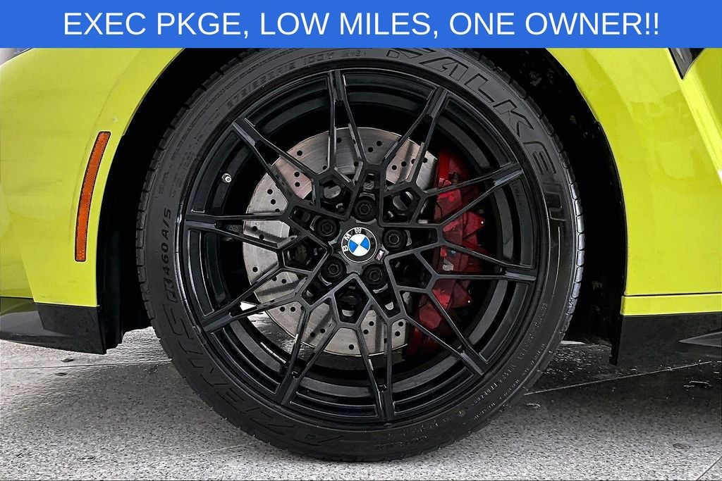 Meticulously crafted with a stunning yellow exterior, this M4 Base is equipped with a wealth of premium features that elevate both style and functionality. Highlights include the Executive Package, which grants you access to a WiFi Hotspot, Head-Up Display, Power Tailgate, Gesture Control, and more. The Carbon Fiber Trim and M Shadowline Lights add a touch of sophisticated refinement, while the 19 and 20 Silver M Double-Spoke Wheels with Performance Tires provide unparalleled grip and handling.