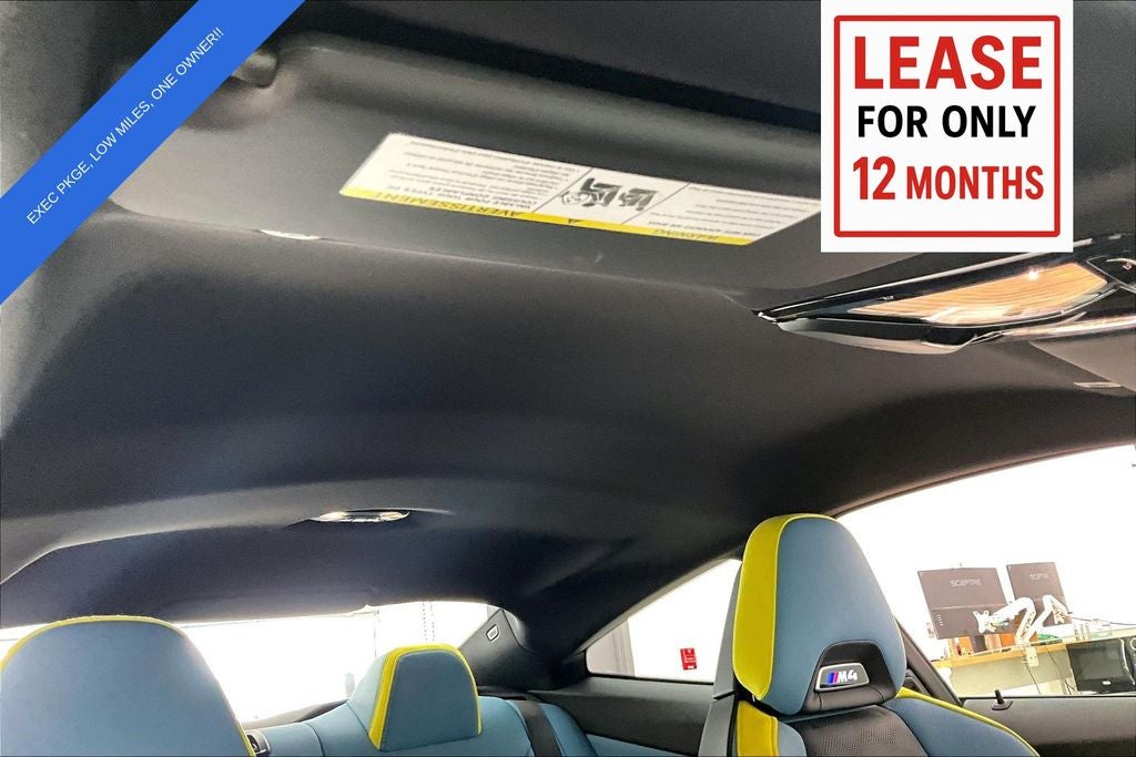 Meticulously crafted with a stunning yellow exterior, this M4 Base is equipped with a wealth of premium features that elevate both style and functionality. Highlights include the Executive Package, which grants you access to a WiFi Hotspot, Head-Up Display, Power Tailgate, Gesture Control, and more. The Carbon Fiber Trim and M Shadowline Lights add a touch of sophisticated refinement, while the 19 and 20 Silver M Double-Spoke Wheels with Performance Tires provide unparalleled grip and handling.