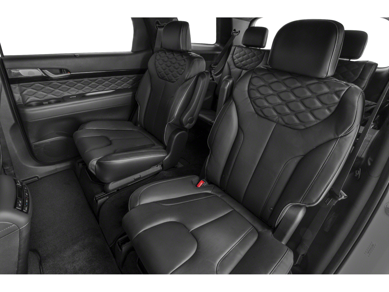 Option Group 01, 12 Speakers, 4-Wheel Disc Brakes, ABS brakes, Air Conditioning, Alloy wheels, AM/FM radio: SiriusXM, Apple CarPlay & Android Auto, Auto High-beam Headlights, Automatic temperature control, Brake assist, Delay-off headlights, Electronic Stability Control, Four wheel independent suspension, Front Bucket Seats, Front Center Armrest, Panic alarm, Power driver seat, Power steering, Power windows, Rain sensing wipers, Rear window wiper, Security system, Speed control, Speed-sensing steering, Tachometer, Traction control, Variably intermittent wipers, 3.648 Axle Ratio, 3rd row seats: split-bench, Auto-dimming Rear-View mirror, Bumpers: body-color, Cargo Cover/Screen, Cargo Tray, Carpeted Floor Mats, Compass, Driver door bin, Driver vanity mirror, Dual front impact airbags, Dual front side impact airbags, Emergency communication system: Blue Link Connected Car Service (3-year complimentary subscription), Front anti-roll bar, Front dual zone A/C, Front reading lights, Fully automatic headlights, Garage door transmitter: HomeLink, harman/kardon® Speakers, Heads-Up Display, Heated & Ventilated Front Bucket Seats, Heated door mirrors, Heated front seats, Heated rear seats, Heated steering wheel, Illuminated entry, Knee airbag, Low tire pressure warning, Memory seat, Navigation System, Occupant sensing airbag, Outside temperature display, Overhead airbag, Overhead console, Passenger door bin, Passenger vanity mirror, Power door mirrors, Power Liftgate, Power moonroof, Power passenger seat, Premium Nappa Leather Seat Trim, Radio data system, Radio: AM/FM/MP3 Premium Audio System, Rear air conditioning, Rear anti-roll bar, Rear reading lights, Rear window defroster, Reclining 3rd row seat, Remote keyless entry, Split folding rear seat, Spoiler, Steering wheel mounted audio controls, Telescoping steering wheel, Tilt steering wheel, Trip computer, Turn signal indicator mirrors, Ventilated front seats, Ventilated rear seats, Wheel Locks, and Wheels: 20 x 7.5J Calligraphy Exclusive Alloy.