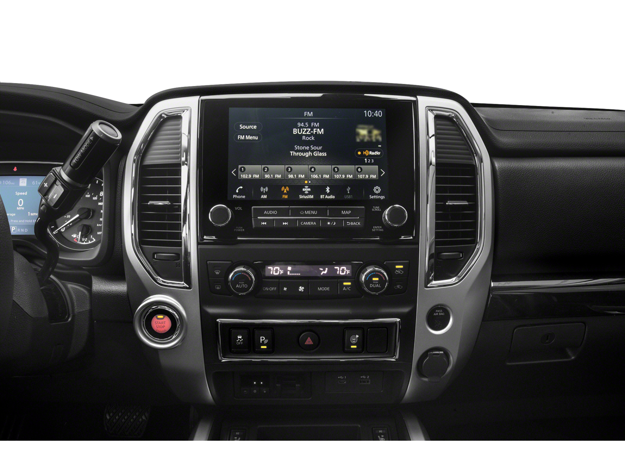 Off Road Protection Package (All Season Floor Mats), SV Convenience Package (Front & Rear Parking Sensors, 110V/12V Outlets In Back Of Center Console, 2 Illuminated USB-A Ports In Back Of Center Console, Auto-Dimming Rear-View Mirror, Chrome Interior Door Locks, Convex Spotter Mirror, Dedicated Cell Phone Holder, Dual Zone Automatic HVAC, Heated Front Captain's Chairs, Intelligent Key System, Leather-Wrapped Steering Wheel, Power Sliding Rear Window w/Defogger, Radio: NissanConnect w/Navigation, Rear HVAC Vents, Remote Engine Start on Key Fob, and Traffic Sign Recognition (TSR)), SV Tow Package (4-Pin/7-Pin Wiring Harness Connector (Rear Bumper), Heated Manually Extendable Tow Mirrors, Puddle Lamps, Receiver Hitch, Trailer Brake Controller, and Trailer Light Check Function On Key Fob), SV Utility Package (110V Outlet in Bed, Auto-Dimming Rearview Mirror w/UGDO, Electronic Locking Tailgate, Flat Floor Function w/Tie Down Hooks, LED Tailgate Area Illumination, LED Under Rail Bed Lighting, Rain Sensing Wipers, Rear Utility Bed Step, Spray-On Bedliner, Universal Garage Door Opener, and Utilitrack System w/4 Tie-Down Cleats), 4-Wheel Disc Brakes, 6 Speakers, ABS brakes, Air Conditioning, AM/FM radio: SiriusXM, Auto High-beam Headlights, Brake assist, Cloth Seat Trim, Fully automatic headlights, Low tire pressure warning, NissanConnect featuring Apple CarPlay and Android Auto, Panic alarm, Power windows, Remote keyless entry, Security system, Speed control, Speed-sensing steering, Steering wheel mounted audio controls, Traction control, Variably intermittent wipers, 3.692 Axle Ratio, Alloy wheels, Blind Spot Warning, Bumpers: chrome, Carpet Floor Mats (L95), Driver door bin, Driver vanity mirror, Dual front impact airbags, Dual front side impact airbags, Electronic Stability Control, Emergency communication system: NissanConnect Services, Front anti-roll bar, Front Center Armrest w/Storage, Front reading lights, Front Split Bench Seat (40/20/40), Front wheel independent suspension, Heated door mirrors, Illuminated entry, Knee airbag, Occupant sensing airbag, Outside temperature display, Overhead airbag, Overhead console, Passenger door bin, Passenger vanity mirror, Power door mirrors, Power steering, Radio data system, Radio: NissanConnect AM/FM, Rear anti-roll bar, Rear Bumper Step w/Electronic Tailgate Lock, Rear Parking Sensors, Rear seat center armrest, Rear Seat Entertainment (DISC), Rear step bumper, Rear window defroster, Speed-Sensitive Wipers, Split folding rear seat, Tachometer, Telesc