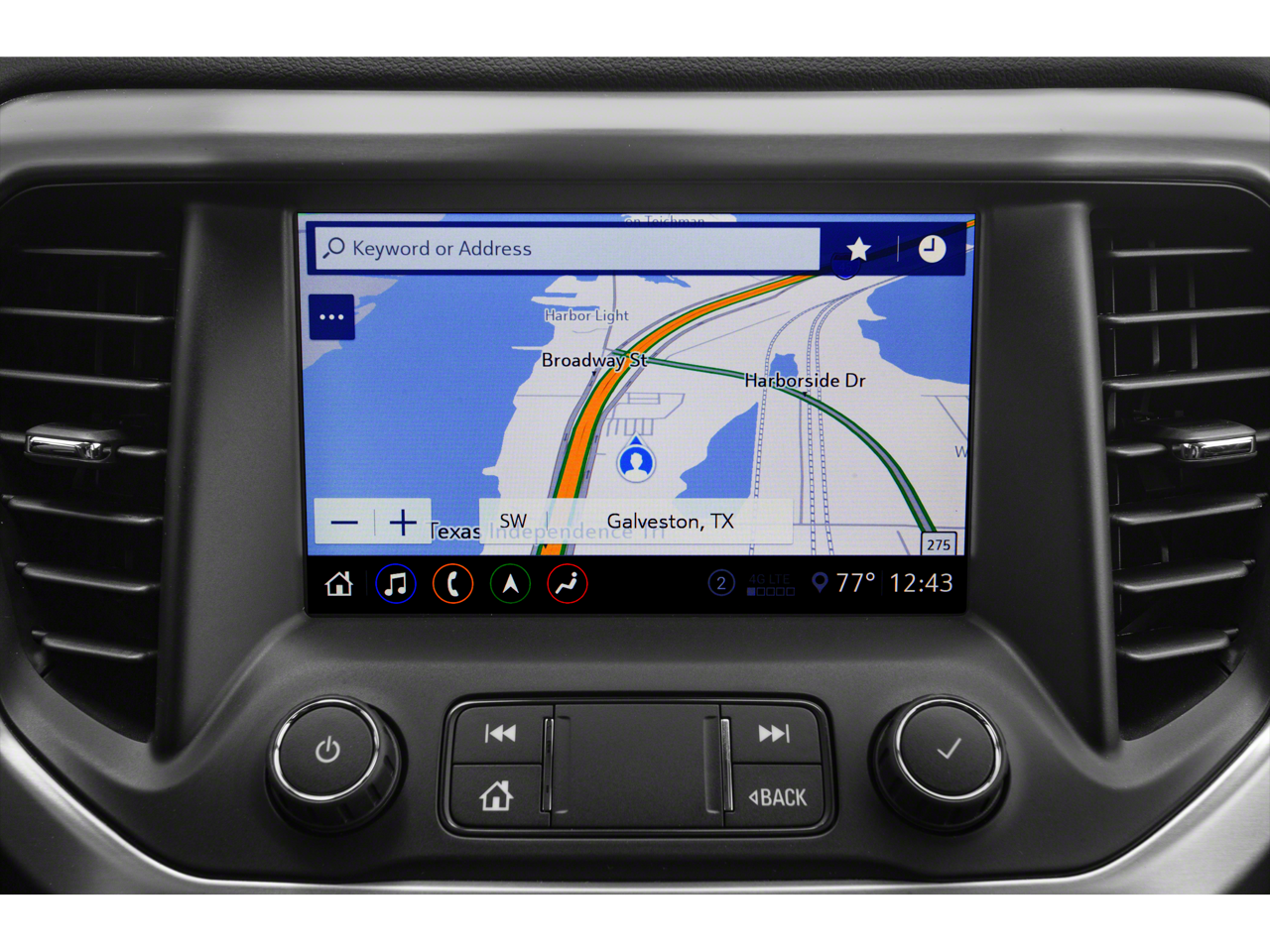 - Audio system, 8" diagonal GMC Infotainment System with Navigation includes multi-touch display, AM/FM/SiriusXM stereo, Bluetooth® streaming audio for music and most phones, Android Auto and Apple CarPlay capability for compatible phones, advanced voice recognition, in-vehicle apps, personalized profiles for infotainment and vehicle settings