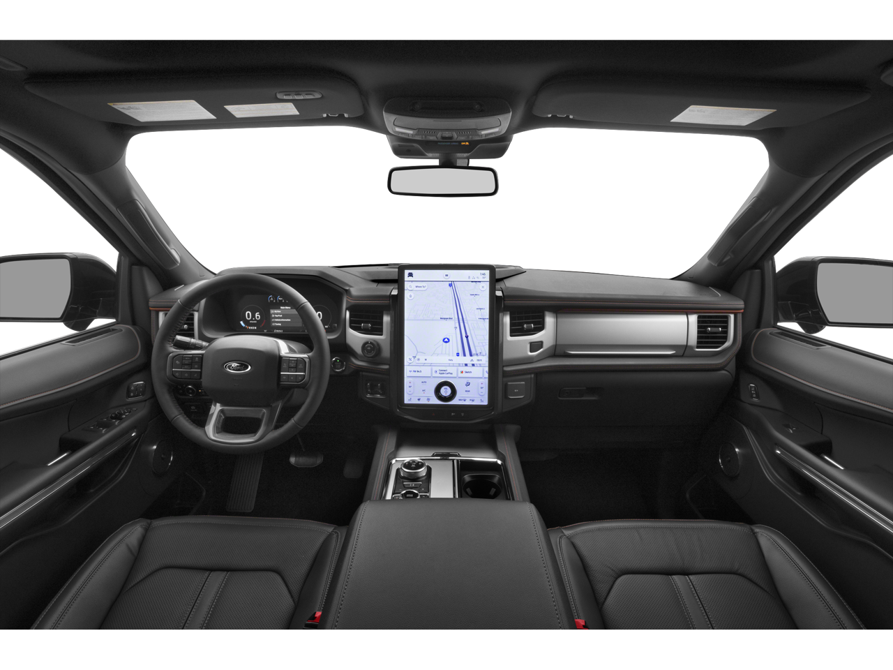 Equipment Group 500A Standard Package, 2nd Row Power-Folding 40/20/40 Leather Bench Seat, 4-Wheel Disc Brakes, 6 Speakers, ABS brakes, Air Conditioning, AM/FM radio: SiriusXM with 360L, Auto High-beam Headlights, Auto-dimming door mirrors, Automatic temperature control, Brake assist, Bumpers: body-color, Delay-off headlights, Electronic Stability Control, Exterior Parking Camera Rear, Four wheel independent suspension, Front Bucket Seats, Front dual zone A/C, Low tire pressure warning, Panoramic Vista Roof, Power driver seat, Power Liftgate, Power windows, Radio data system, Remote keyless entry, Speed-sensing steering, Variably intermittent wipers, 3rd row seats: split-bench, Adjustable pedals, Alloy wheels, Auto-dimming Rear-View mirror, Compass, ControlTrac w/3.73 Axle Ratio, Driver door bin, Driver vanity mirror, Dual front impact airbags, Dual front side impact airbags, Emergency communication system: SYNC 4 911 Assist, Front anti-roll bar, Front Center Armrest, Front fog lights, Front reading lights, Fully automatic headlights, Garage door transmitter, Heated & Vent Cloth/Vinyl Front Captain's Chairs, Heated door mirrors, Heated front seats, Heated steering wheel, Illuminated entry, Leather steering wheel, Memory seat, Navigation system: Connected Navigation, Occupant sensing airbag, Outside temperature display, Overhead airbag, Overhead console, Panic alarm, Passenger door bin, Passenger vanity mirror, Pedal memory, Power door mirrors, Power passenger seat, Power steering, Radio: AM/FM Stereo w/MP3 Capable, Rear air conditioning, Rear anti-roll bar, Rear reading lights, Rear window defroster, Rear window wiper, Reclining 3rd row seat, Security system, SiriusXM w/360L, Speed control, Speed-Sensitive Wipers, Split folding rear seat, Spoiler, Steering wheel memory, Steering wheel mounted audio controls, SYNC 4 w/Enhanced Voice Recognition, Tachometer, Telescoping steering wheel, Tilt steering wheel, Traction control, Trip computer, Turn signal indicator mirrors, Ventilated front seats, Voltmeter, and Wheels: 18 Ebony-Painted.