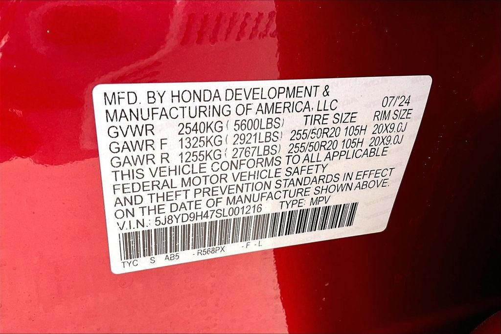 - Front Tire Size: P255/50HR20